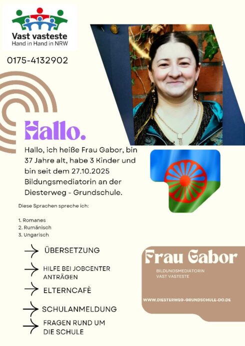„Vast vasteste – Hand in Hand in NRW“ – Schulmediation für neu zugewanderte Kinder aus Südosteuropa und Kinder in vergleichbaren Lebenslagen im Rahmen des Masterplans Grundschule. Hier setzen sich Roma als Bildungsmediator:innen für aus Südosteuropa zugewanderte und bildungsbenachteiligte Kinder und Jugendliche ein. Dabei soll die gleichberechtigte Bildungsteilhabe von Schüler:innen aus